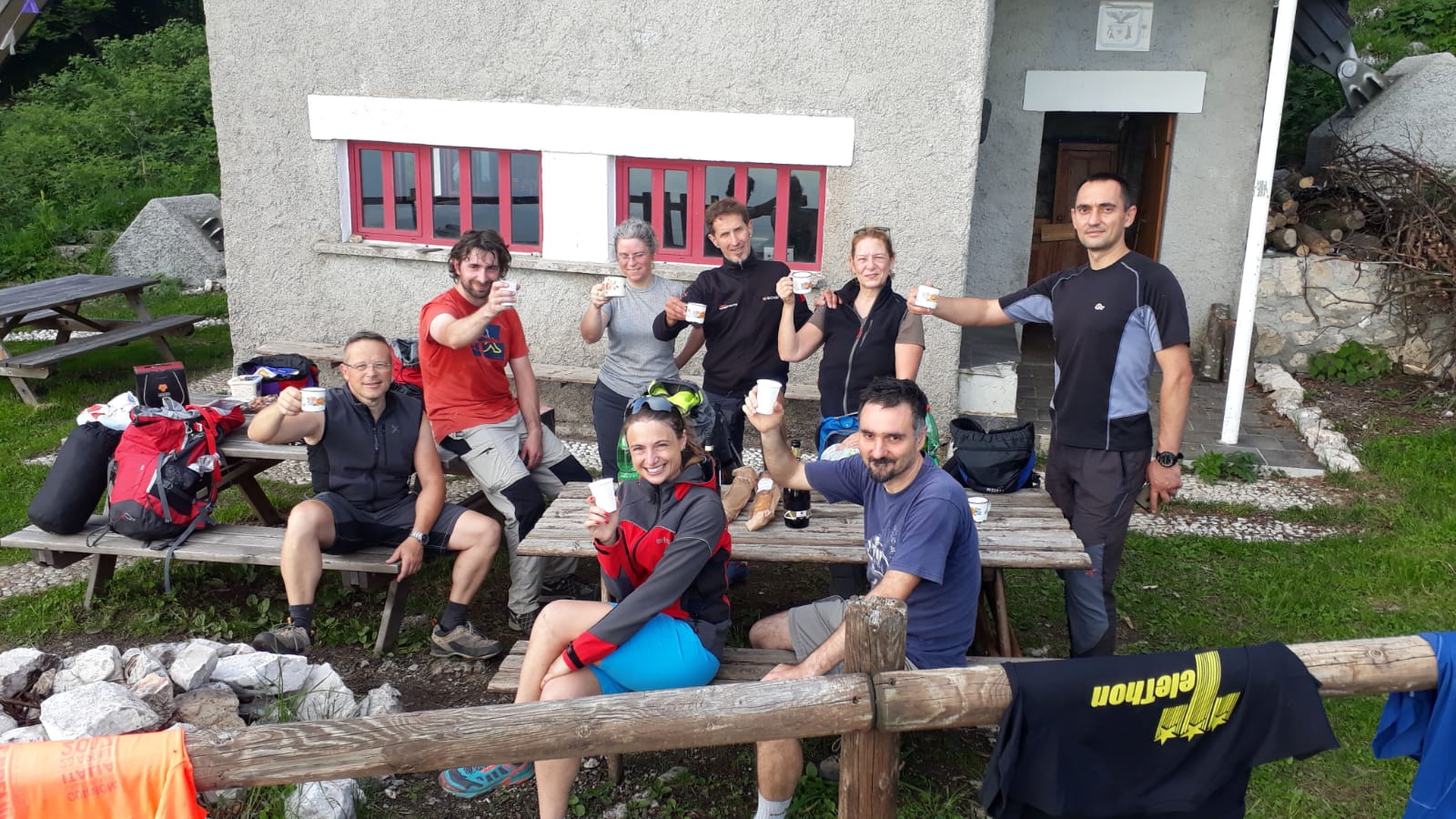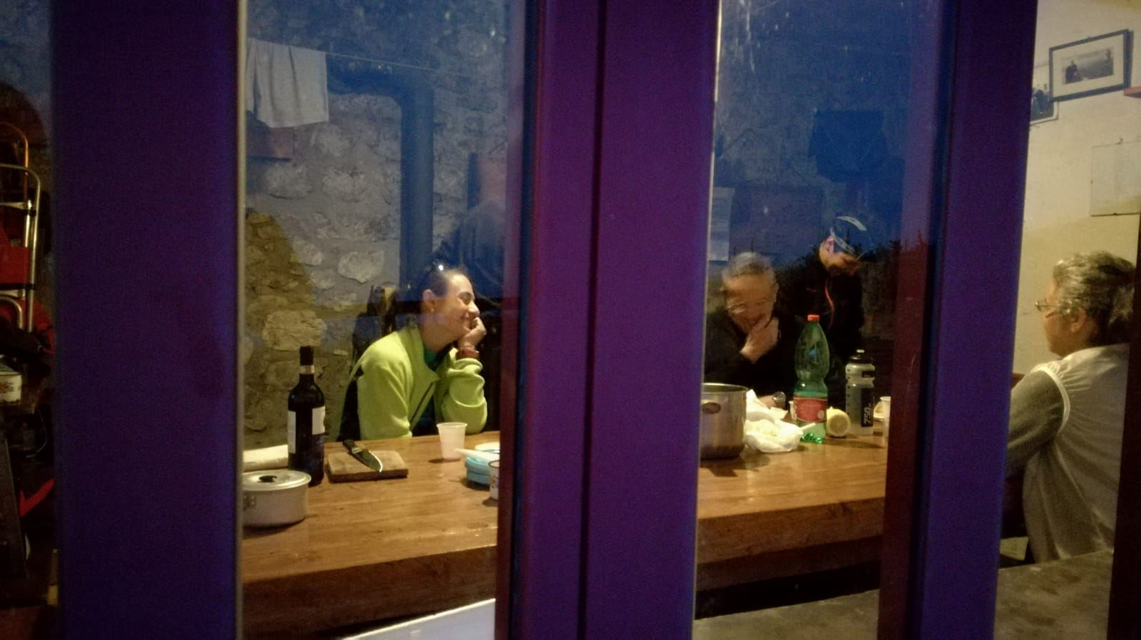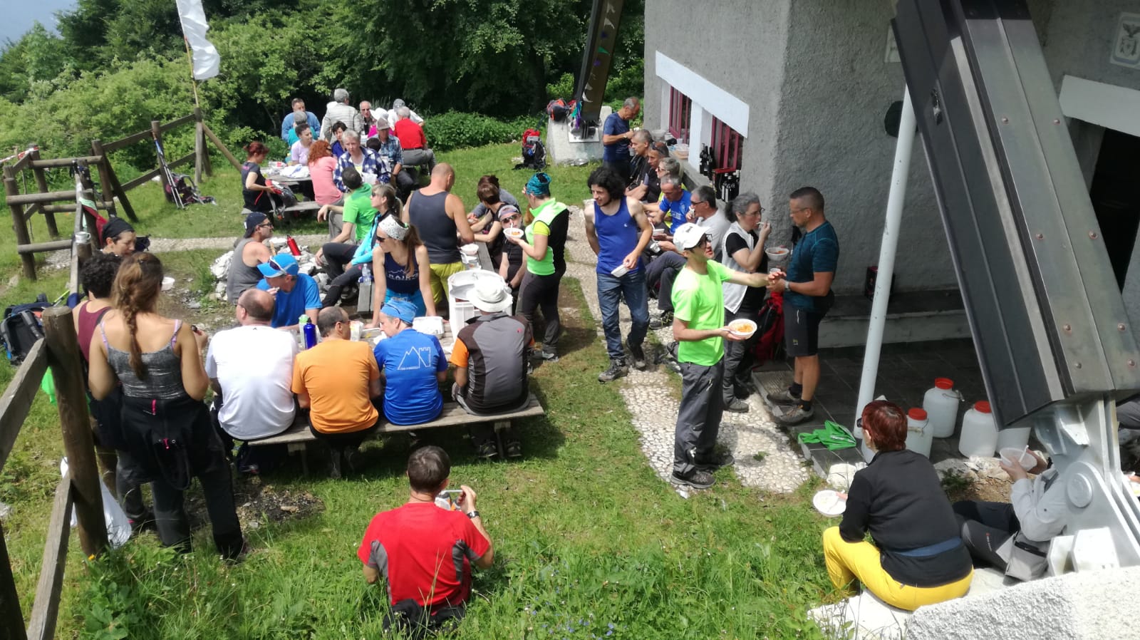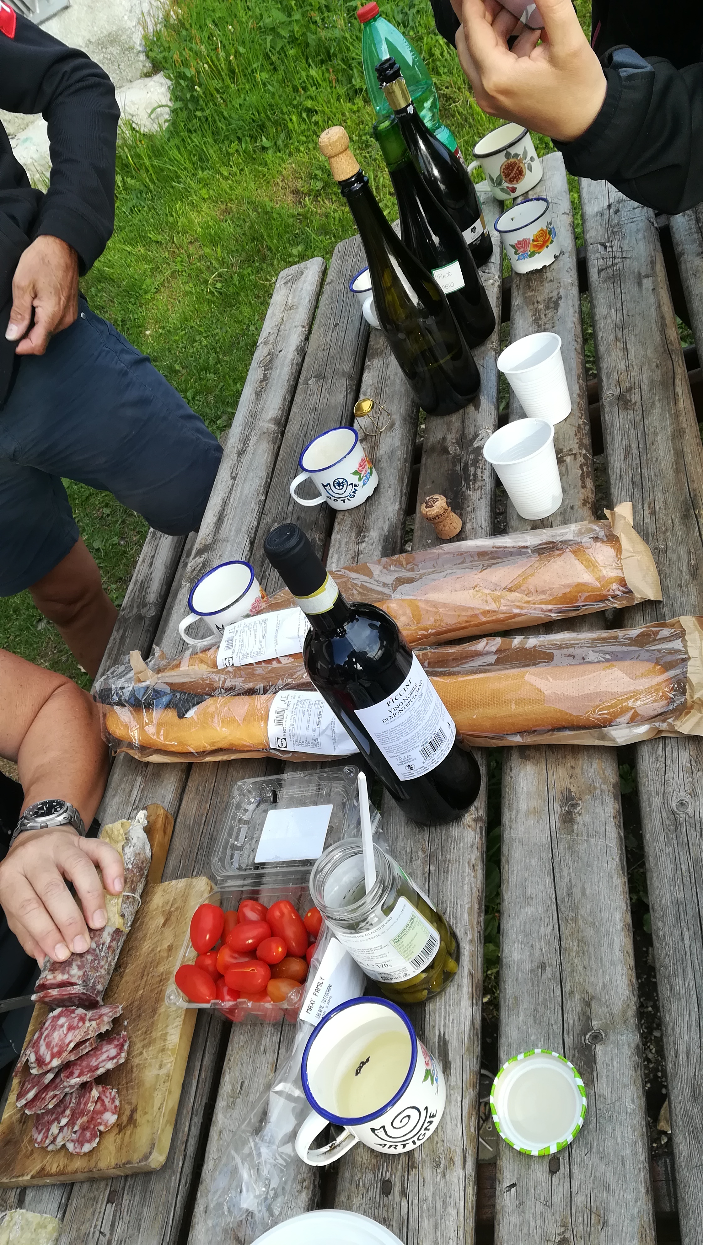 I nostri portatori carnici pronti con per la scalata, armati di chili di pasta, salami q.b., stoviglie e acqua a volontà… ma solo per far bollire la pasta che sia chiaro, noi preferiamo il nettare diVino.